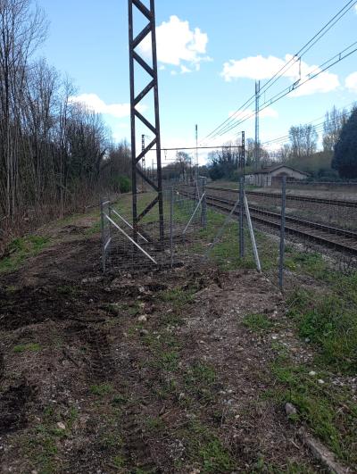 Pose de clôture 150 cm de hauteur avec piquet galvanisé. Chantier sur la commune de Roussillon 01510